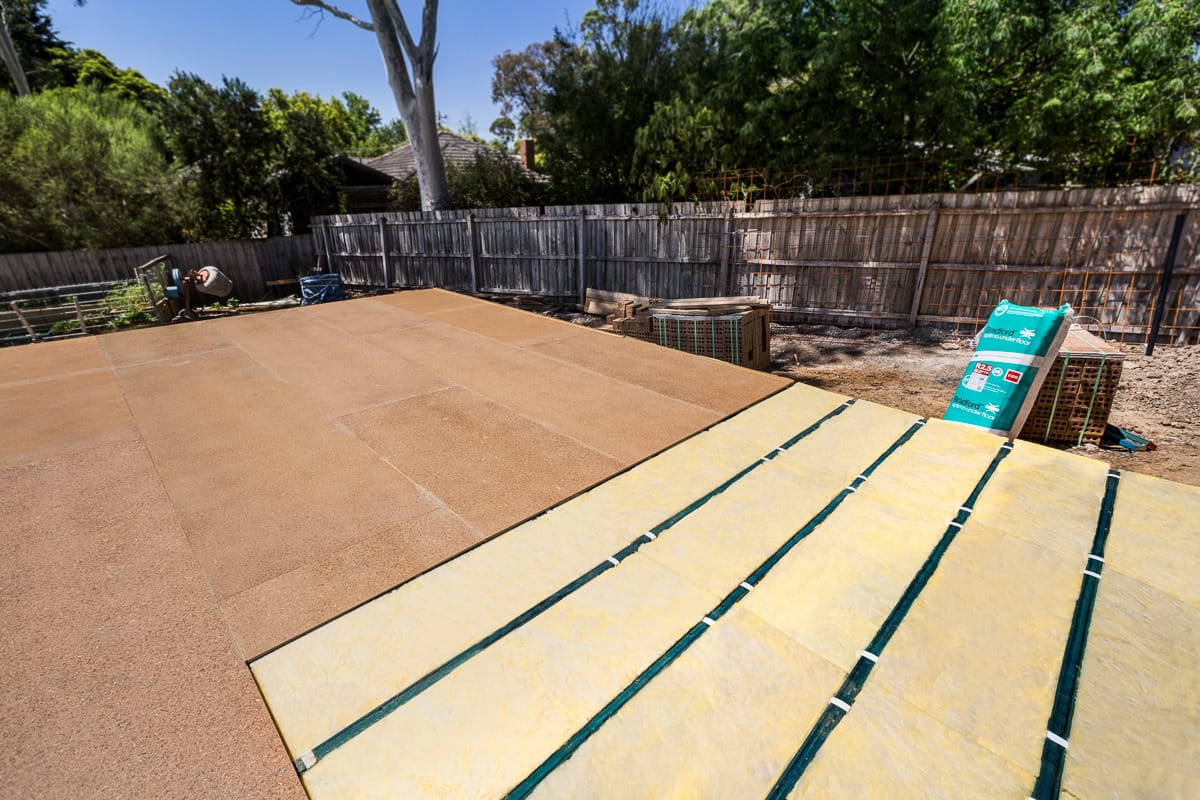 In an existing home, the insulation is installed from underneath the house, between the floor joists, fixed in place with Optimo straps. The insulation has been developed so it is rigid enough to friction fit in place between the joists but soft enough to be easily manipulated and installed.